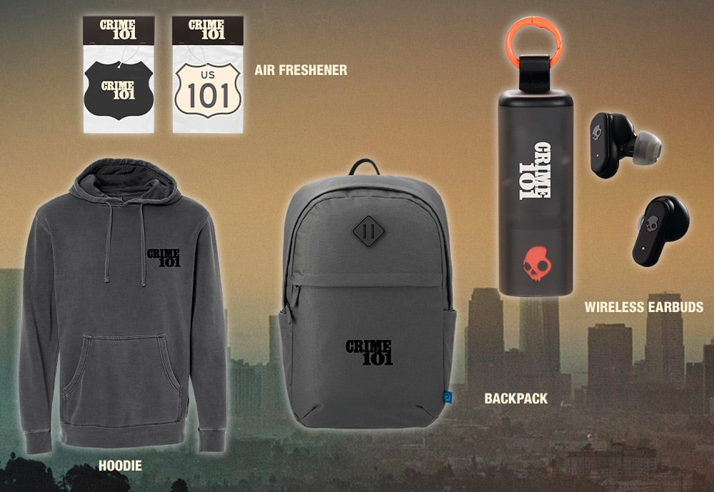 Open the Crime 101 prize pack listing and review the description and official rules link.