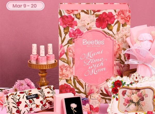 A Beetles “Mani Time with Mom” gift box (the listing calls out a high-value box and multiple winners).